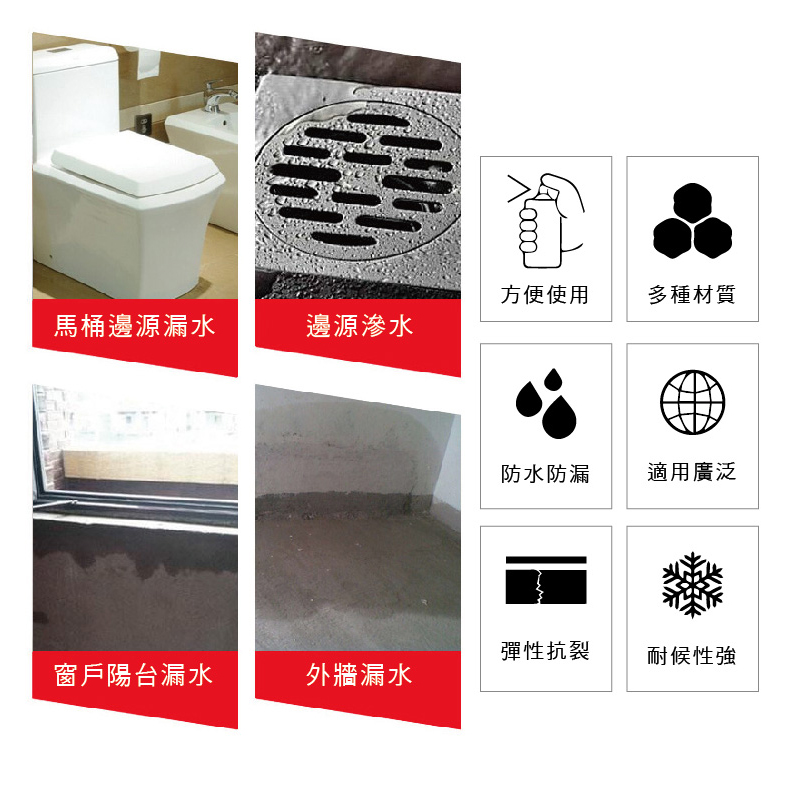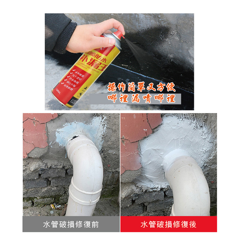✔️ 噴式防水補漏膠 輕鬆補漏,不沾手!!!! ✔️ 屋頂、磁磚龜裂、管線破裂、窗台漏水 ✔️ 約20-30分鐘 乾燥凝固,不怕沾黏 ✔️ 塗料會自行成防護膜,水珠凝結不滲透